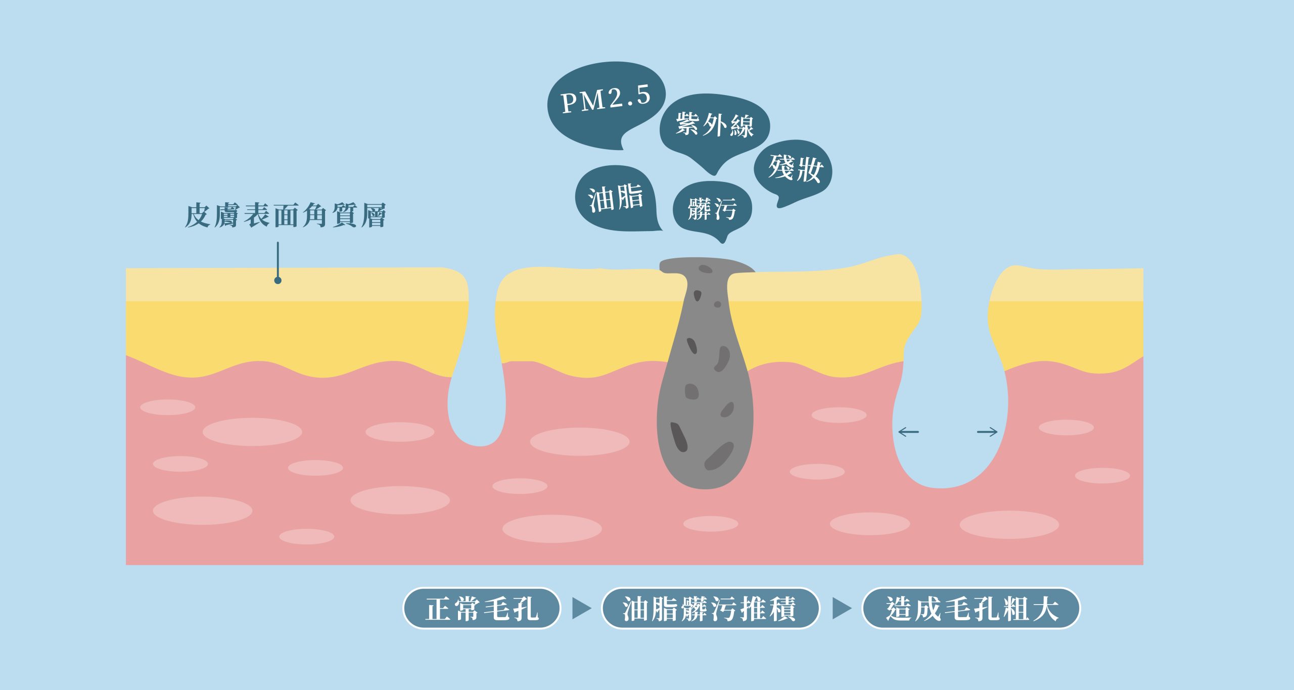 當老廢角質與毛孔髒污堆積在肌膚表層與深層時,後續的保養成分自然難以被吸收,也更容易引發發炎與不穩定反應。