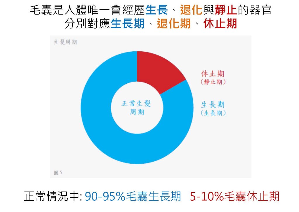 - 休止期 (Telogen):毛髮準備脫落,為期約 3-4 個月,隨後新的生長期再次啟動。