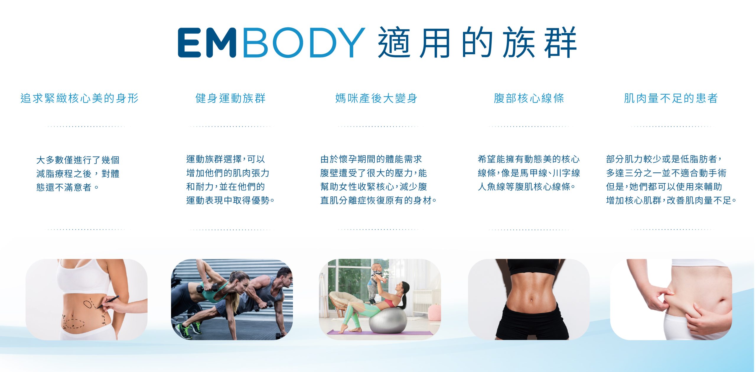 根據不同體態需求,EMBODY 常針對以下區域做定位: