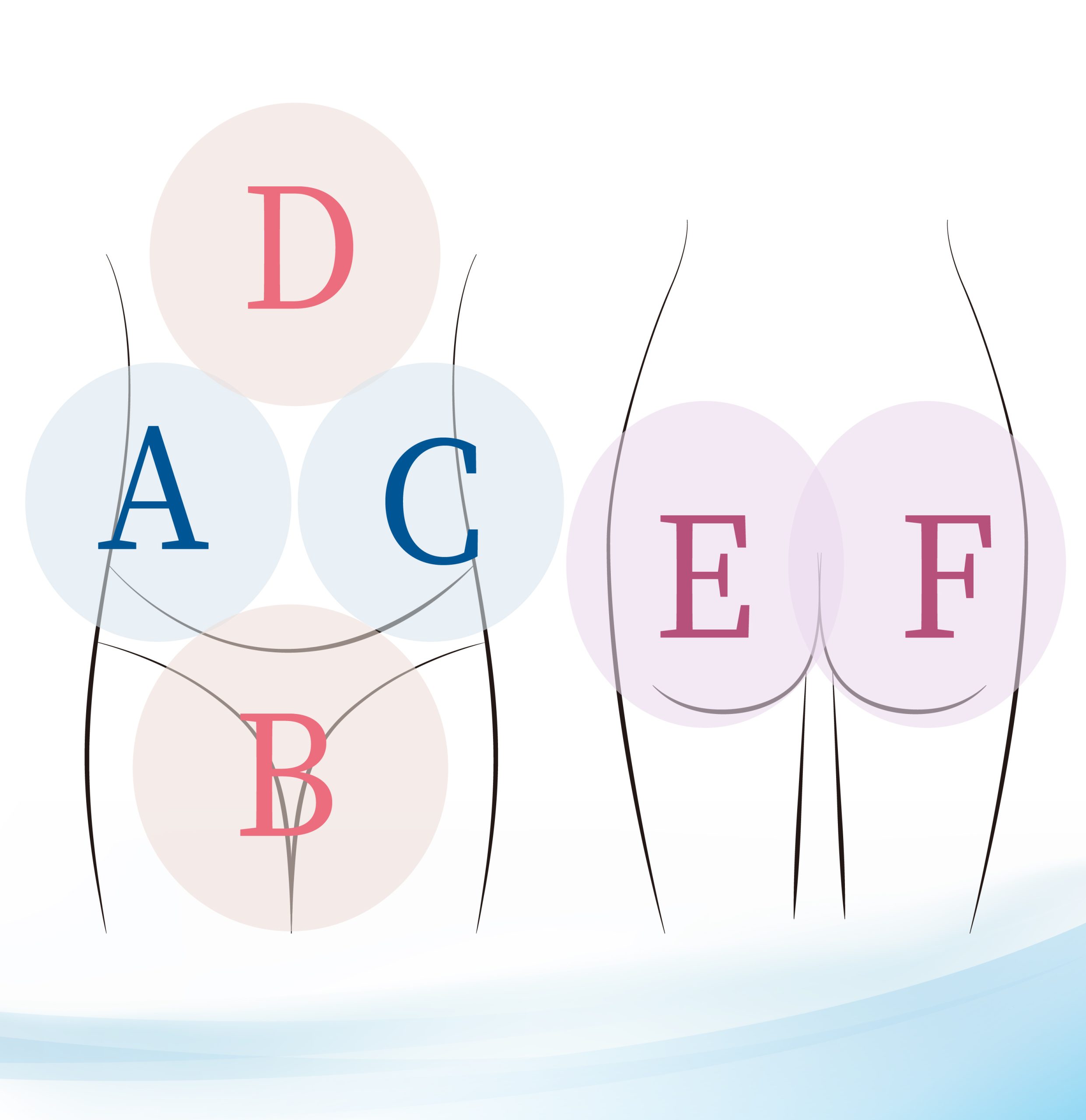 ● 臀部(EF區):臀部下垂、外擴或微笑線不明顯,改善臀肌張力與形狀。