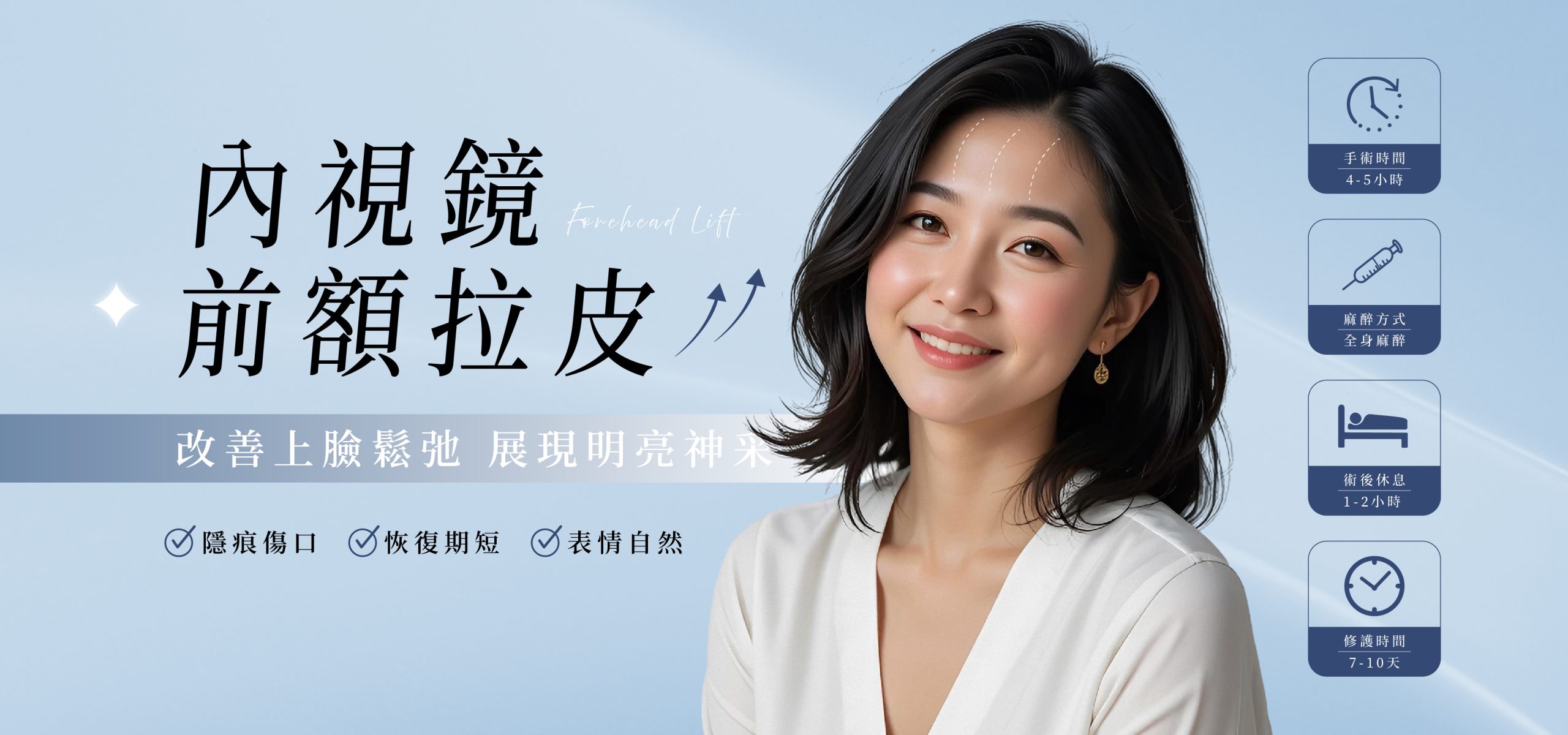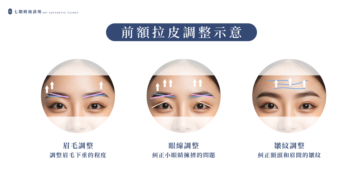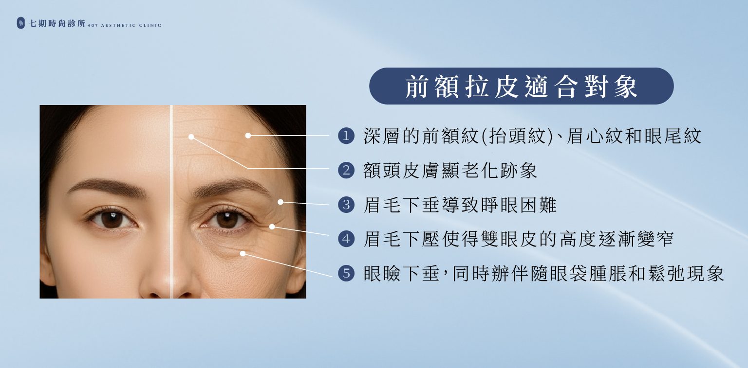 這些變化若僅靠非侵入式方式或眼周局部手術,通常難以從根本改善眉額上方鬆弛的問題。