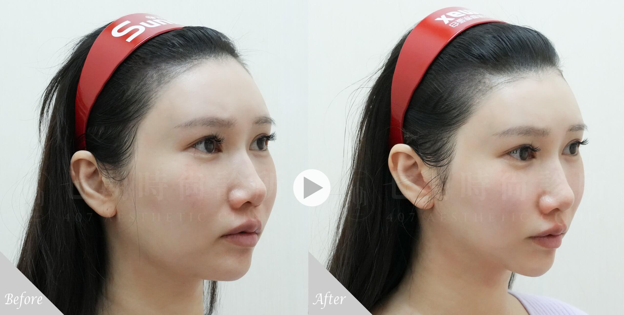 • 臉部輪廓線略有下垂,但尚未嚴重