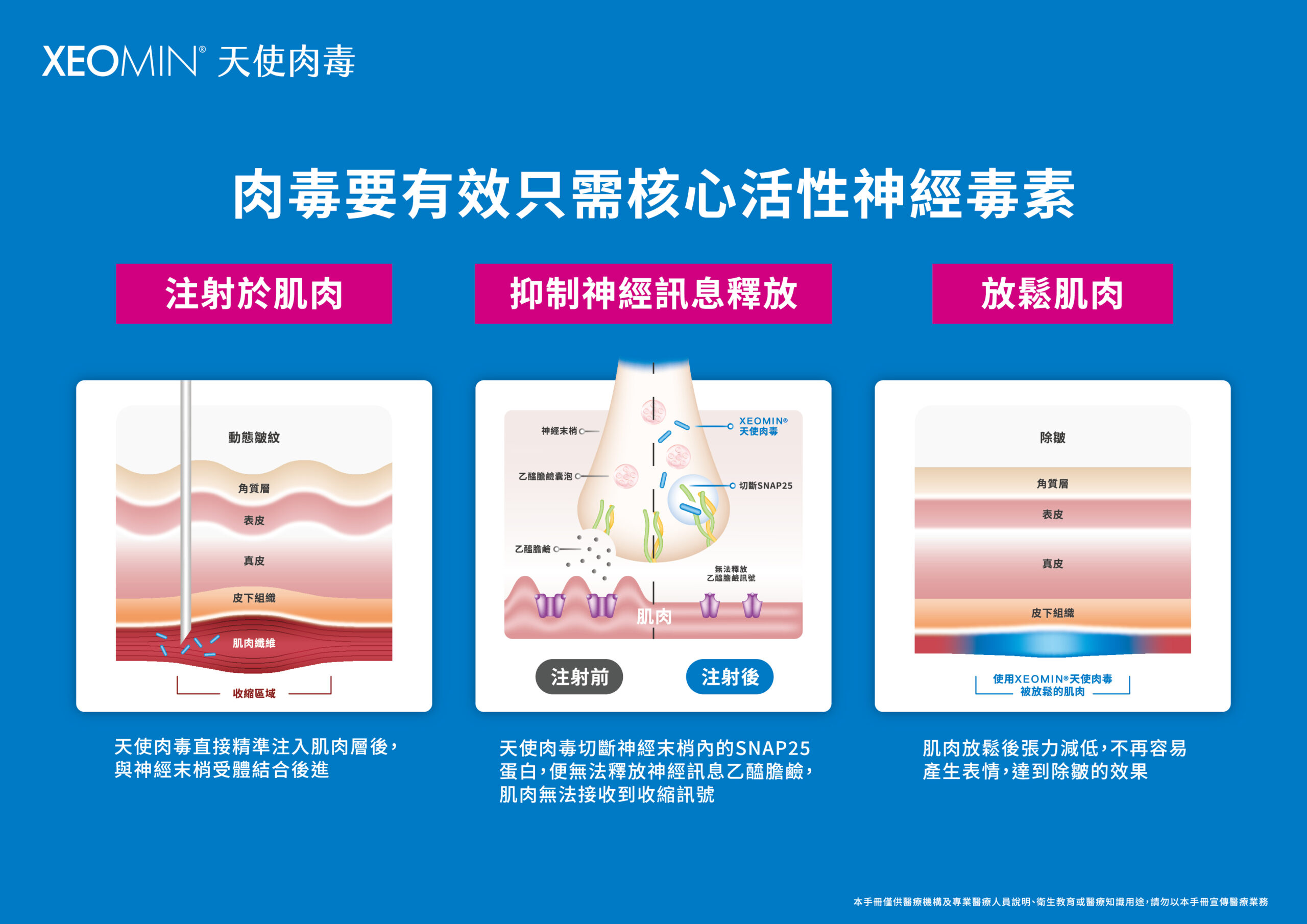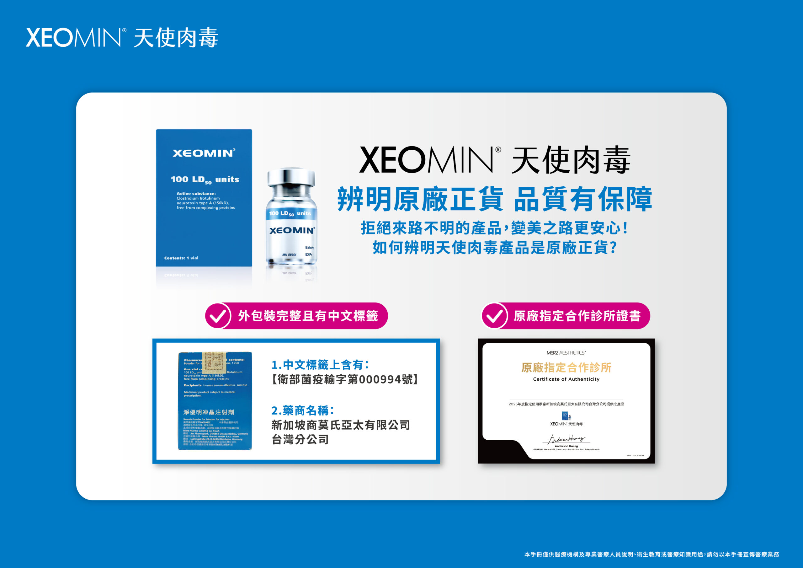 ● 國際核可:Xeomin 已通過美國 FDA、歐盟 EMA 及台灣衛福部 TFDA 核可。