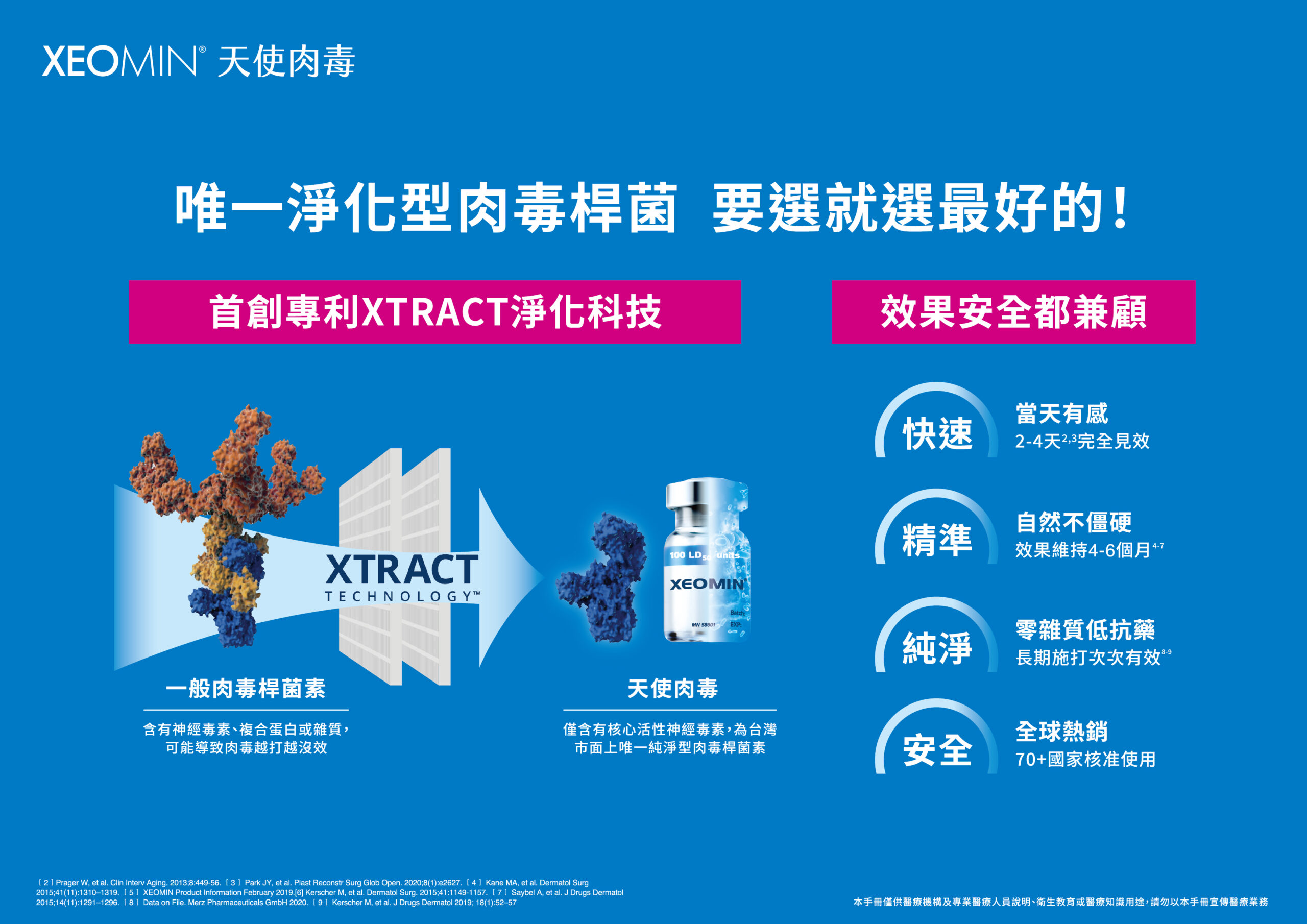 Xeomin 天使肉毒經德國原廠 XTRACT® 雙重純化技術,只留下核心活性神經毒素,因此被稱為「純淨注射劑」。